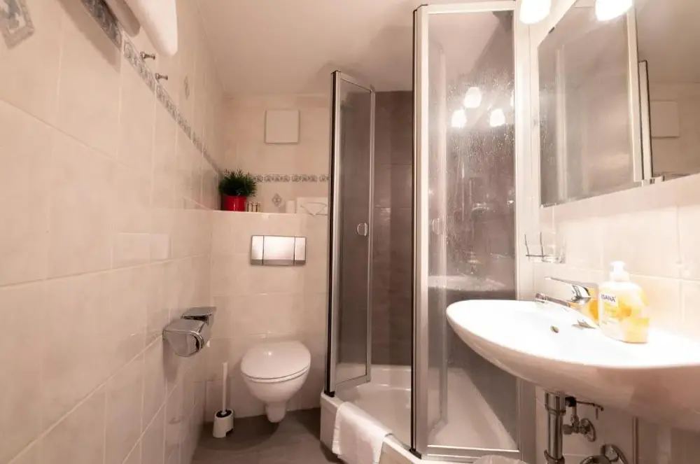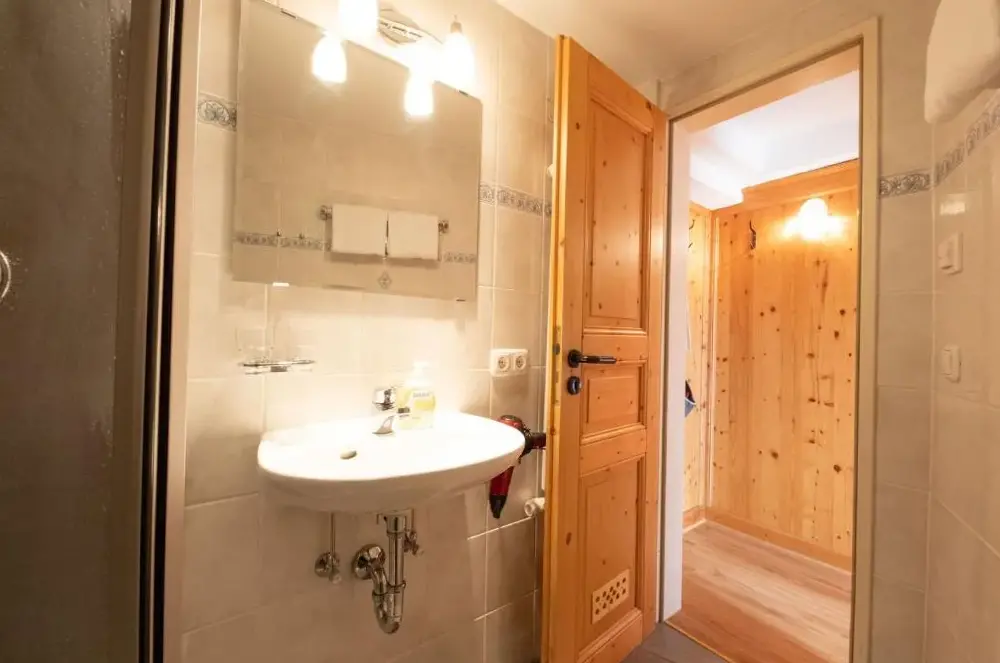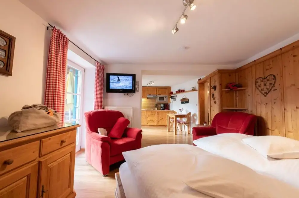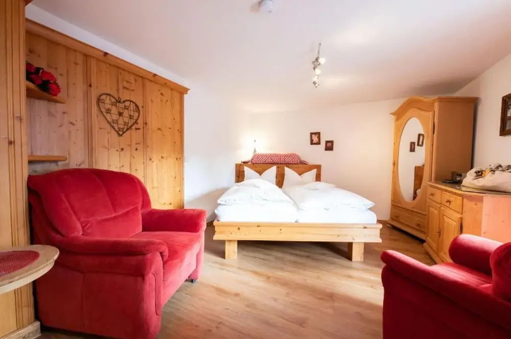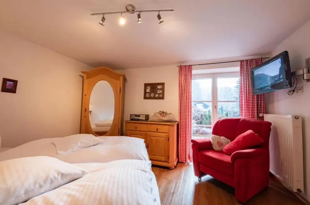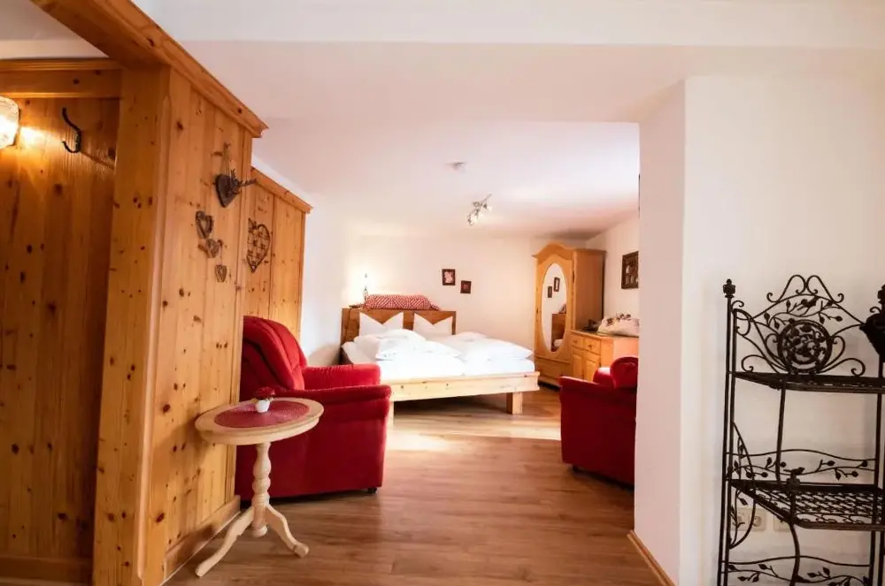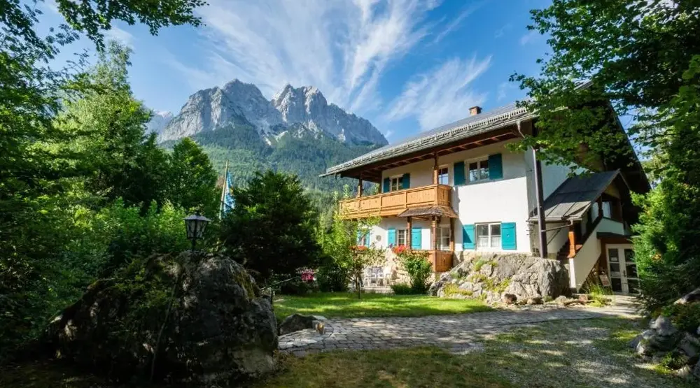 Ausgezeichnete Aussicht von der überdachten Terrasse auf die umliegende Bergwelt, inklusive Sicht auf die Zugspitze. Bei hohen Temperaturen herrscht eine angenehm niedrige Raumtemperatur. Bequeme Betten und absolute Ruhe.